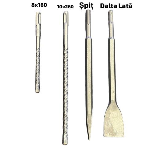 - Accesorii incluse – Pachetul conține burghie SDS și dalta pentru o utilizare imediată.