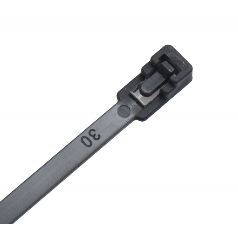 Újrafelhasználható műanyag nyakörv 5x200mm fekete - 100db/szett