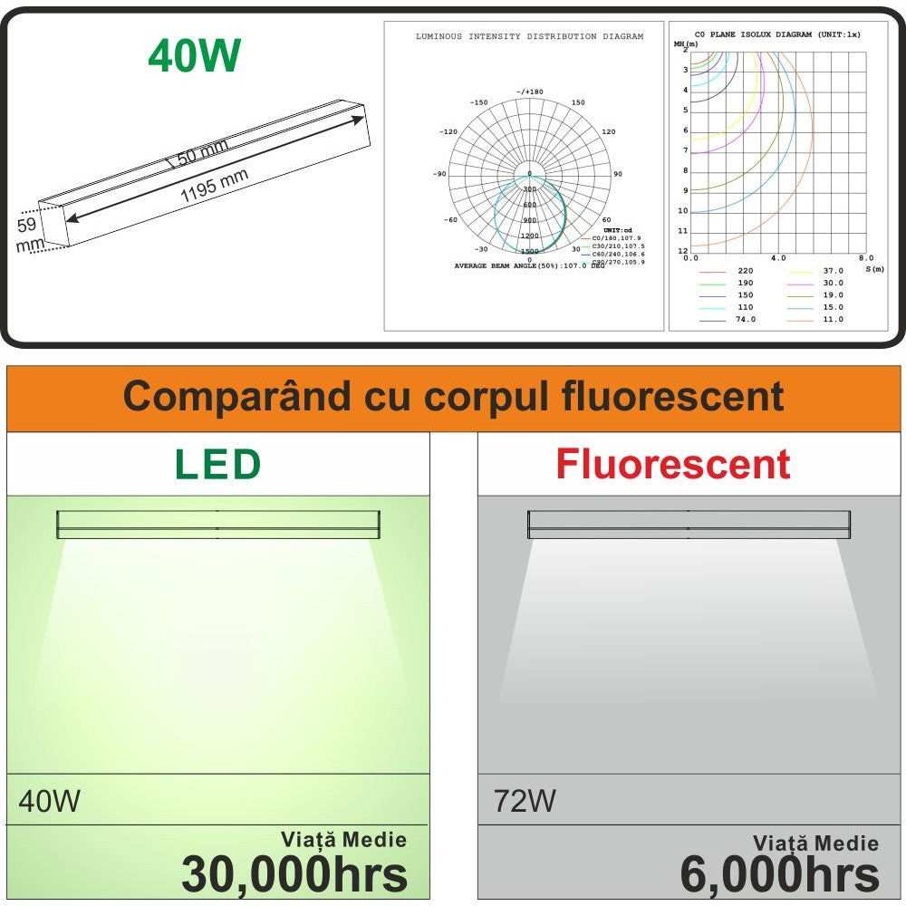 Összekapcsolható lineáris LED ház, 40W, 5000K, fekete
