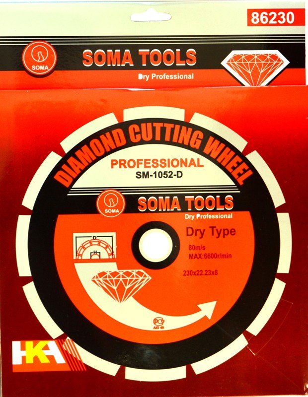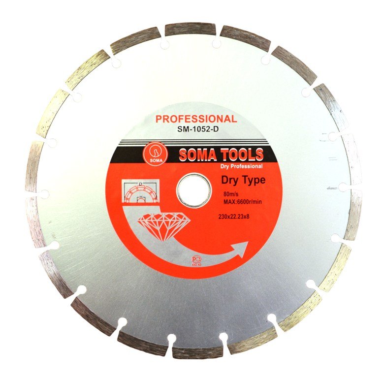Disc diamantat Dry 230mm poate fi utilizat cu mașini de tăiat beton sau cu unelte electrice echivalente care suportă dimensiunea acestuia.