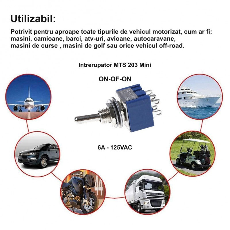 Hat érintkezőjével és tömör fémkarjával ez a kapcsoló megbízható és egyenletes működést biztosít. Az ON-OFF-ON funkció lehetővé teszi az eszközök három különböző módon történő vezérlését, az egyedi igényekhez igazítva azokat.