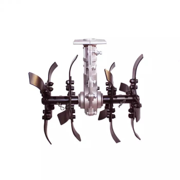 • Accesorii incluse – Pachetul vine cu un cultivator și un dispozitiv de tăiere pentru crengi, extinzând funcționalitatea motocoasei.