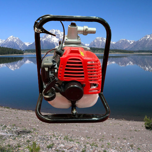 Motopompa este echipată cu un motor de 3 CP, 2 timpi.