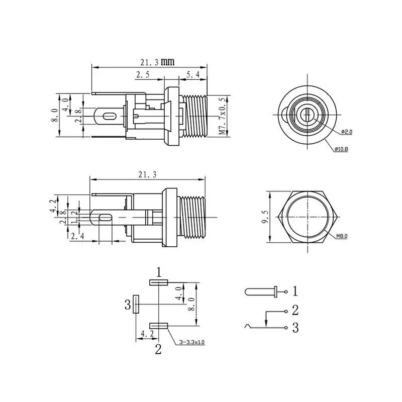 Egyenáramú tápcsatlakozó, 2,1 mm-es műanyag csatlakozó/szerelhető csatlakozó, amelyet gyakran használnak olyan alkalmazásokban, amelyek egyenfeszültségű (DC) tápellátást igényelnek. Könnyen felszerelhető panelekre vagy áramköri lapokra, így ideális elektronikus eszközök és barkácsprojektek széles skálájához.