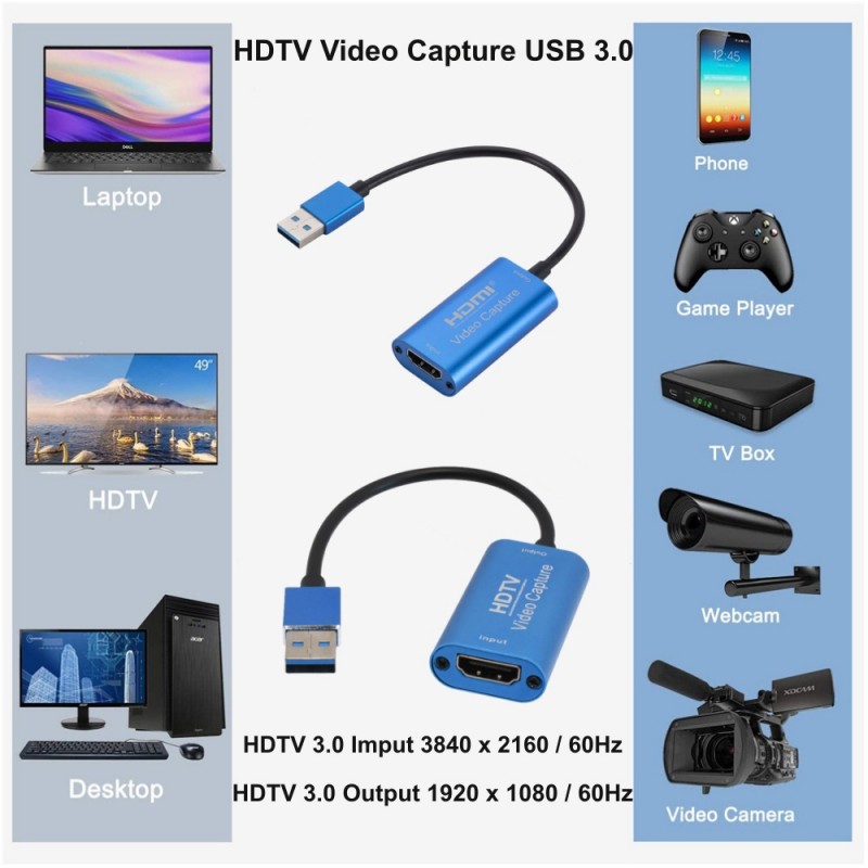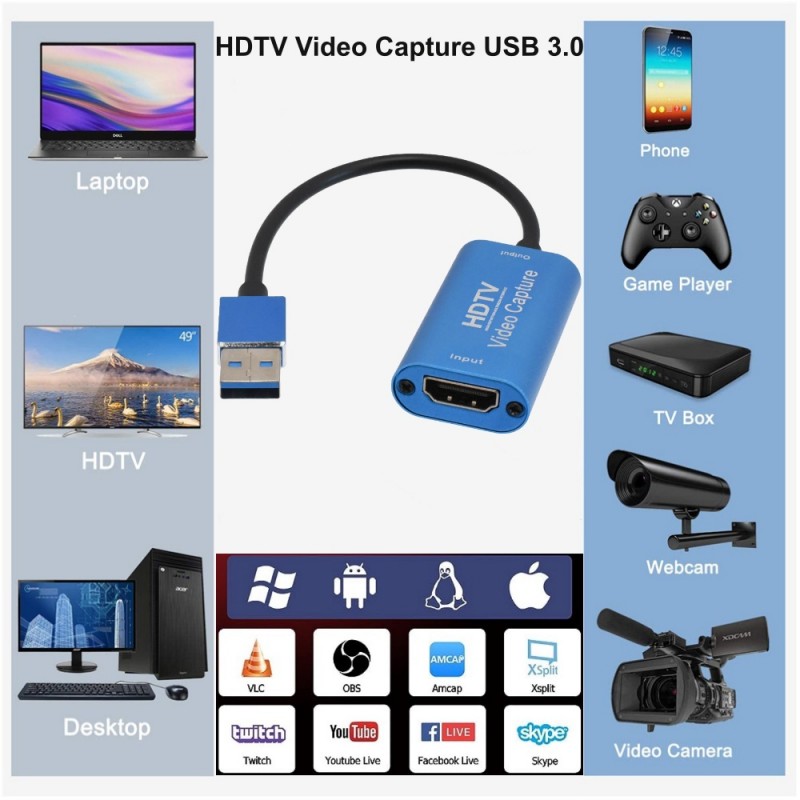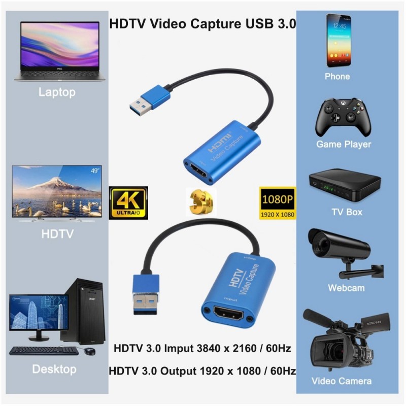 HDMI Video Capture Card – Az USB 3.0 egy olyan eszköz, amely lehetővé teszi a felhasználók számára, hogy kiváló minőségű videotartalmakat rögzítsenek és rögzítsenek HDMI-forrásokról, például játékkonzolokról, Blu-ray lejátszókról, kamerákról, laptopokról vagy más HDMI-eszközökről, és valós időben továbbítsák azokat. számítógépre vagy laptopra az USB 3.0 porton keresztül. Ez a típusú videorögzítő kártya kényelmes megoldást kínál a játékmenet rögzítéséhez, videótartalom létrehozásához, élő közvetítéshez, videószerkesztéshez és egyéb kreatív tevékenységekhez, amelyek magukban foglalják a tartalom rögzítését HDMI-forrásokról.