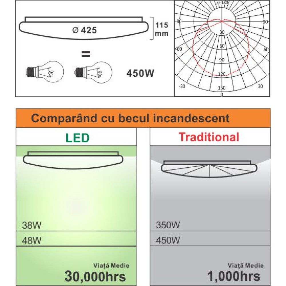 Kerek Aries Led mennyezeti lámpa fi425 48W=450W, 6000K, hideg fény