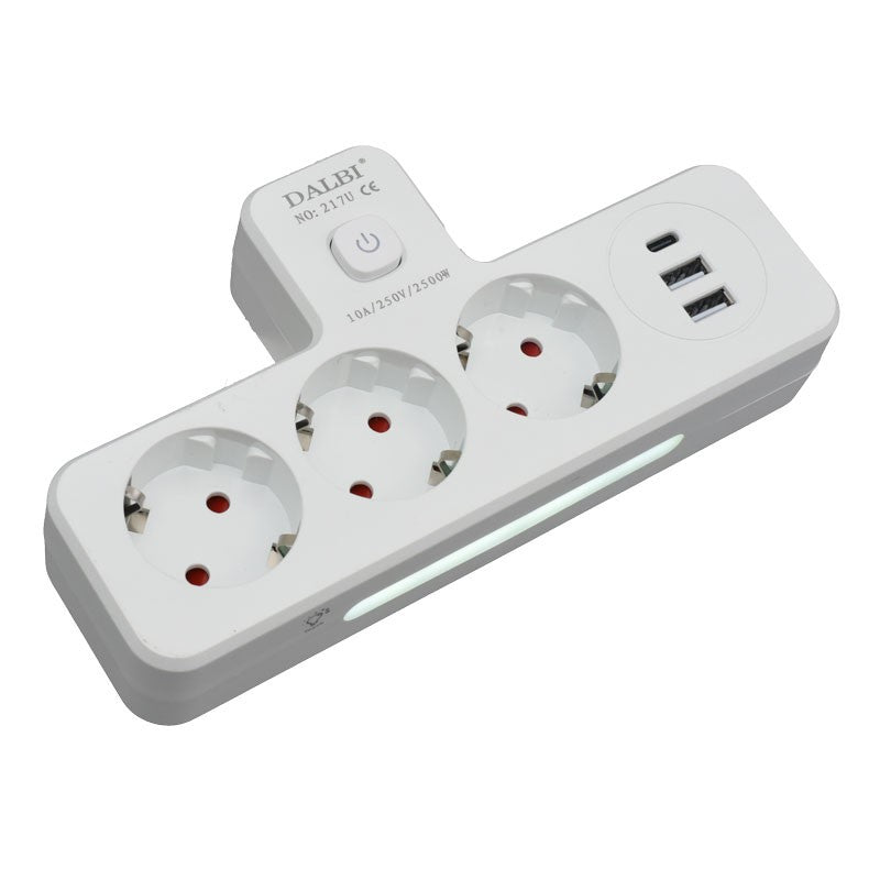 Ștecher Triplu Multifuncțional cu 2 Porturi USB QC3.0 și 1 Port PD 20W – Adaptor cu Lumină Veghe pentru Acasă sau Birou