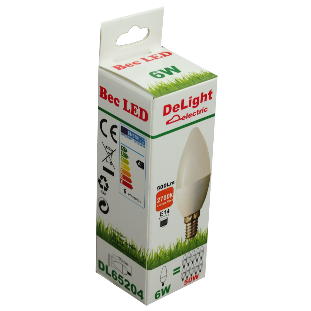Bec LED Lumanare E14 C37 6W (50W Echivalent) 2700K - Lumină Caldă pentru Iluminat Interior, Lampi Decorative