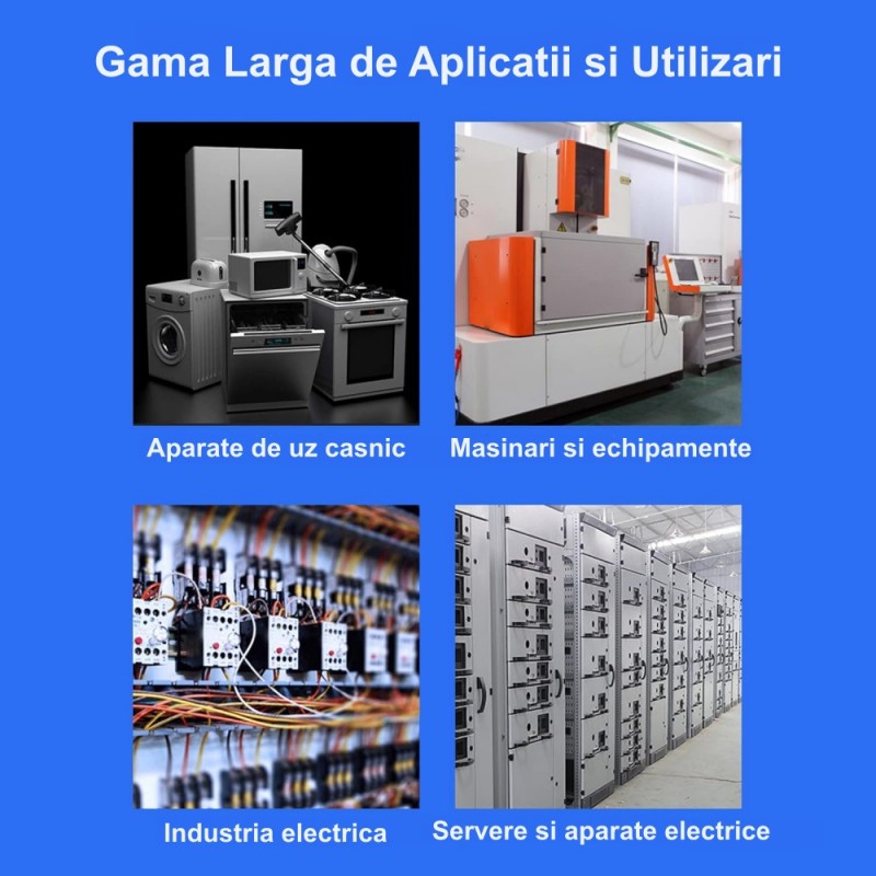 - Aplicații Diverse – Potrivit pentru utilizare în tablouri de distribuție, fabrici, hoteluri și complexe comerciale.