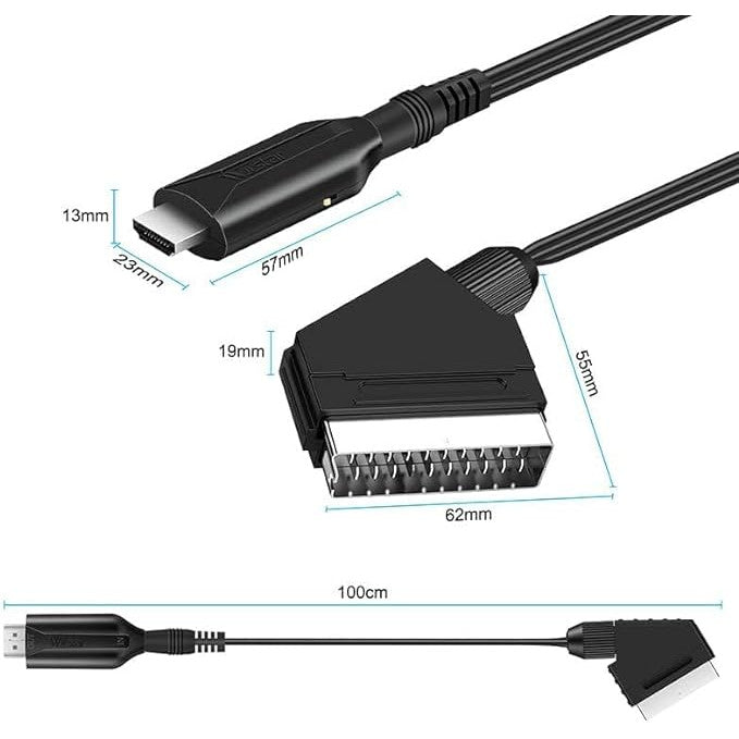 Cablu HDMI la SCART de 1,5 metri, perfect pentru conectarea dispozitivelor moderne cu HDMI la televizoarele sau monitoarele mai vechi care dispun de port SCART. Acest cablu asigură o conectivitate universală, o calitate superioară a semnalului și este construit pentru a oferi durabilitate și fiabilitate. Designul său compact și elegant îl face ușor de utilizat și de transportat, fiind soluția ideală pentru o experiență audio-vizuală de înaltă definiție.