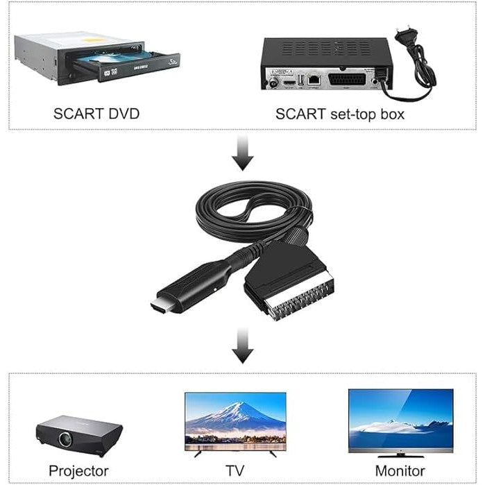 Cablu HDMI 1.5m cu Conector SCART - Negru, Ideal pentru Conectarea Dispozitivelor la Televizoare sau Proiectoare