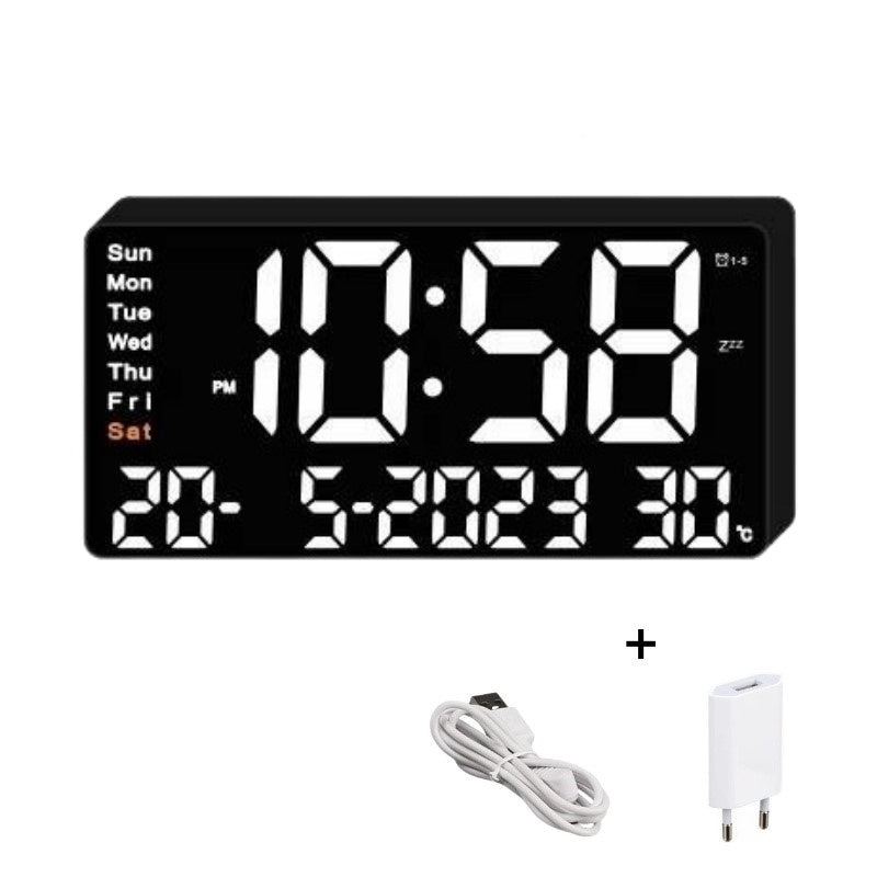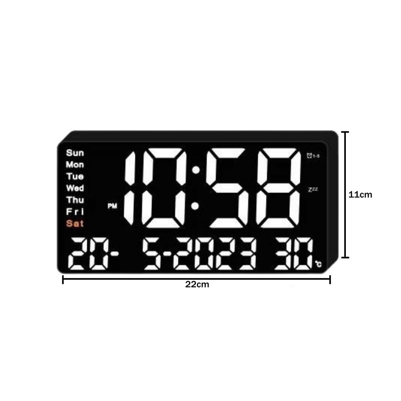 Descoperiți Ceasul Digital de Masă cu LED Alb, un dispozitiv multifuncțional care îmbină eleganța și utilitatea. Cu dimensiunile de 11x22 cm, acest ceas oferă un afisaj clar și ușor de citit, având funcții precum alarmă, calendar, măsurarea temperaturii, snooze și mod de noapte, ceea ce îl face ideal pentru orice încăpere, de la birou la dormitor.