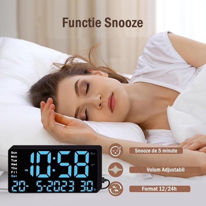 • Funcție Snooze – Amană alarma pentru câteva minute, perfect pentru cei care iubesc să se trezească treptat.