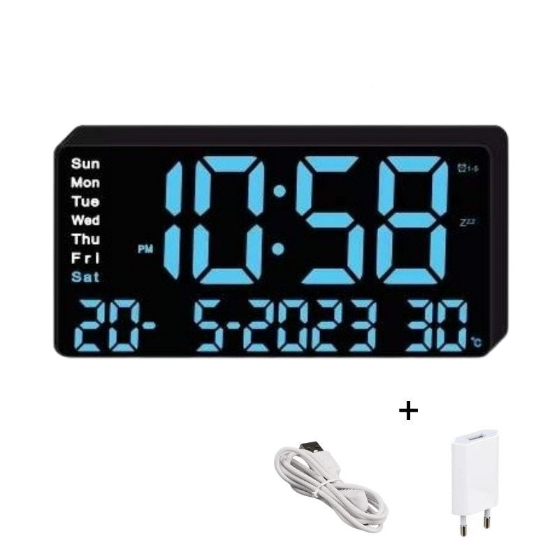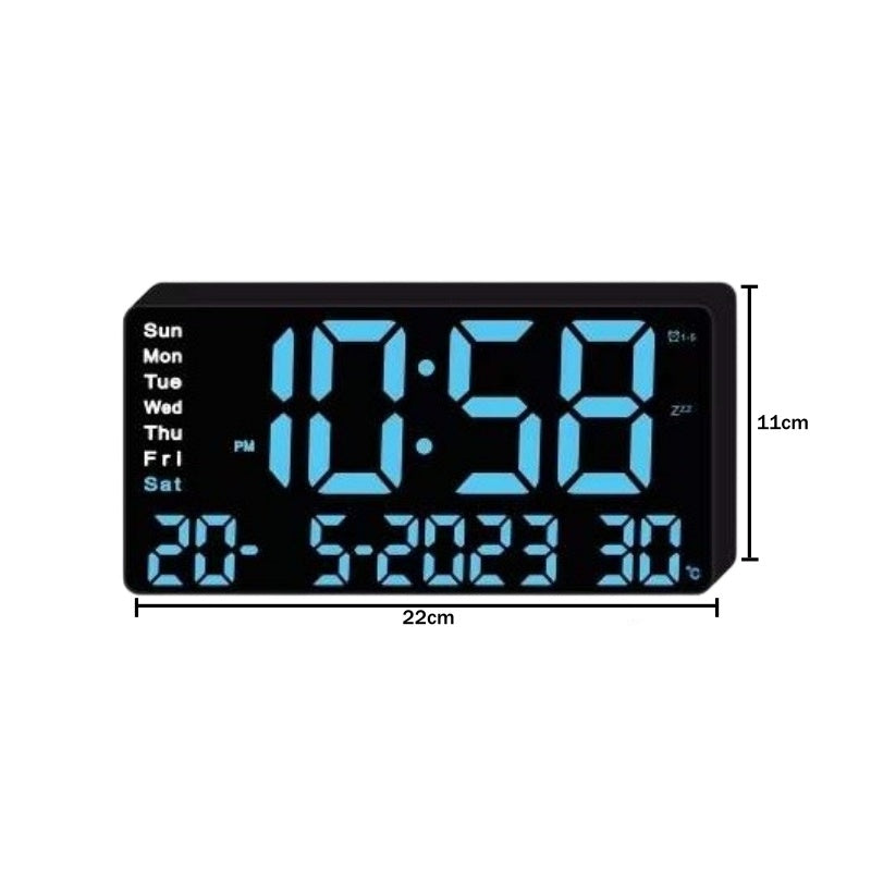 Ceas Digital de Masă cu LED Albastru – Afișaj 11x22cm cu Alarma, Calendar, Temperatura, Snooze și Mod de Noapte
