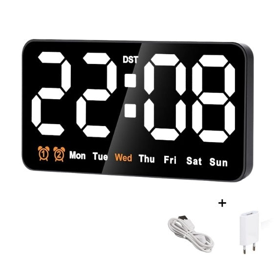 Ceas Digital de Masă și Perete cu Afișaj LED Alb – Alarmă, Calendar, Temperatura și Funcție Snooze