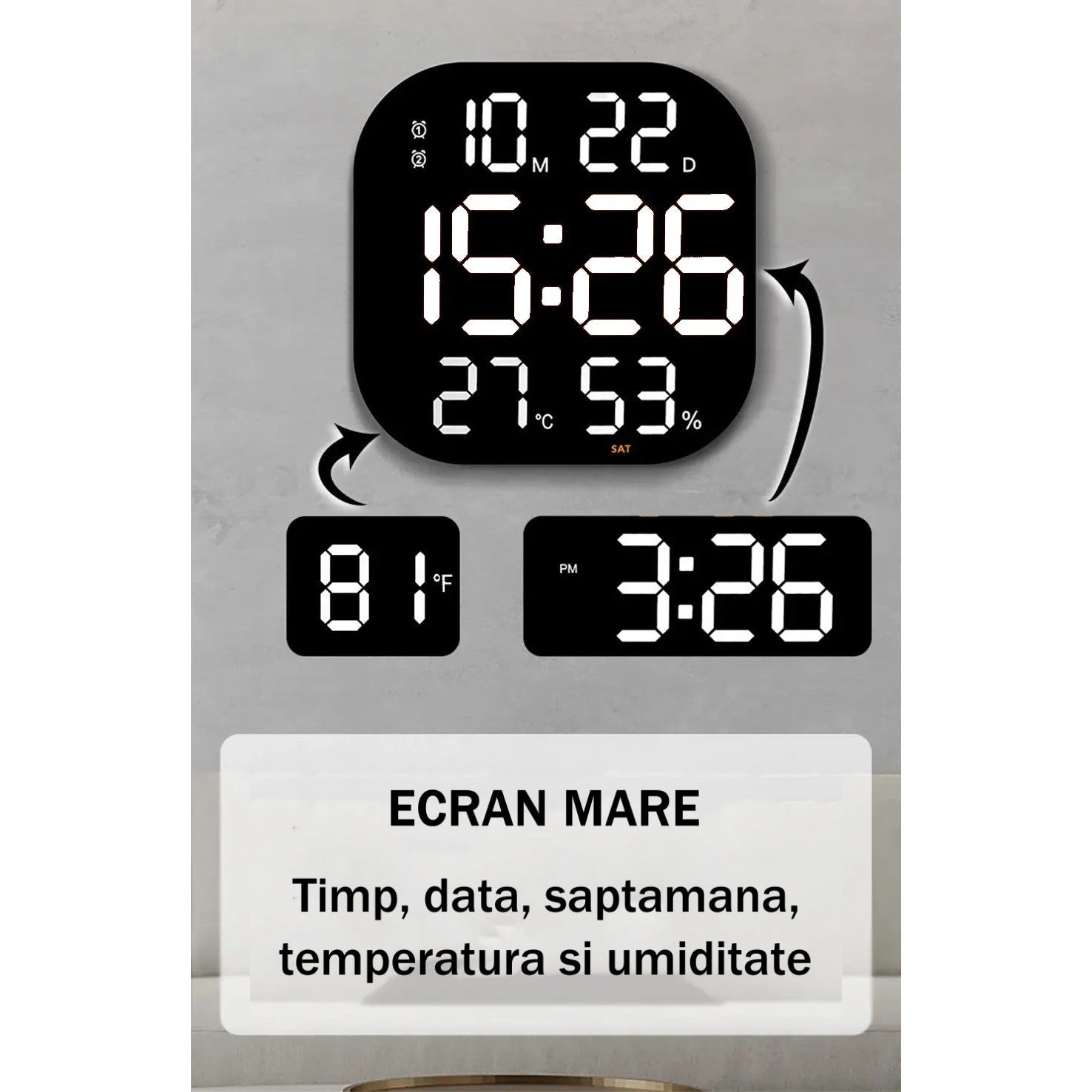 Ceas Digital de Masă și Perete 32x32cm cu LED Alb – Funcții Avansate pentru Casa Ta