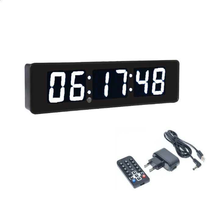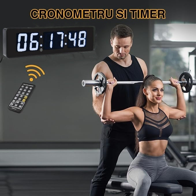 Ceas Digital de Masă și Perete 34x9cm cu LED Alb, Cronometru, Timer și Alarmă – Afișaj cu Luminozitate Ajustabilă pentru Birou sau Spații Comerciale