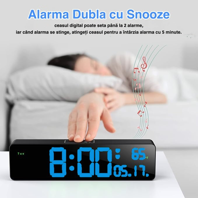 • Alarmă cu Funcție Snooze – Permite amânarea alarmei pentru câteva minute suplimentare.