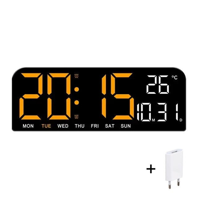 Descoperiți Ceasul Digital de Masă și Perete cu LED Portocaliu, un dispozitiv versatil ce îmbină funcționalitatea cu un design modern. Cu dimensiuni de 24x9cm, acest ceas oferă calendar, cronometru, termometru, alarmă și funcție snooze, toate având luminozitate ajustabilă pentru o vizibilitate optimă. Ideal pentru orice încăpere, acest ceas este atât un instrument practic, cât și o piesă decorativă elegantă.