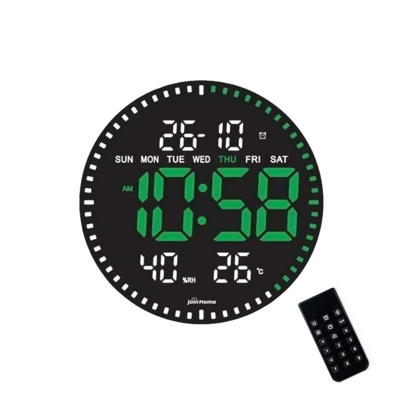 Ceas Digital de Perete 28cm cu LED Verde – Calendar, Termometru, Cronometru și Telecomandă