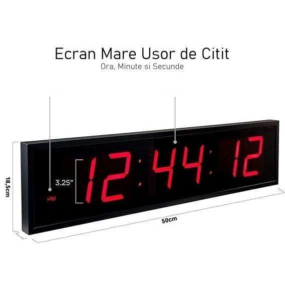 Cronometru Digital LED 50cm cu Telecomandă – Ceas Mare cu Afișaj Roșu pentru Sală de Sport, Birou sau Utilizare Acasă