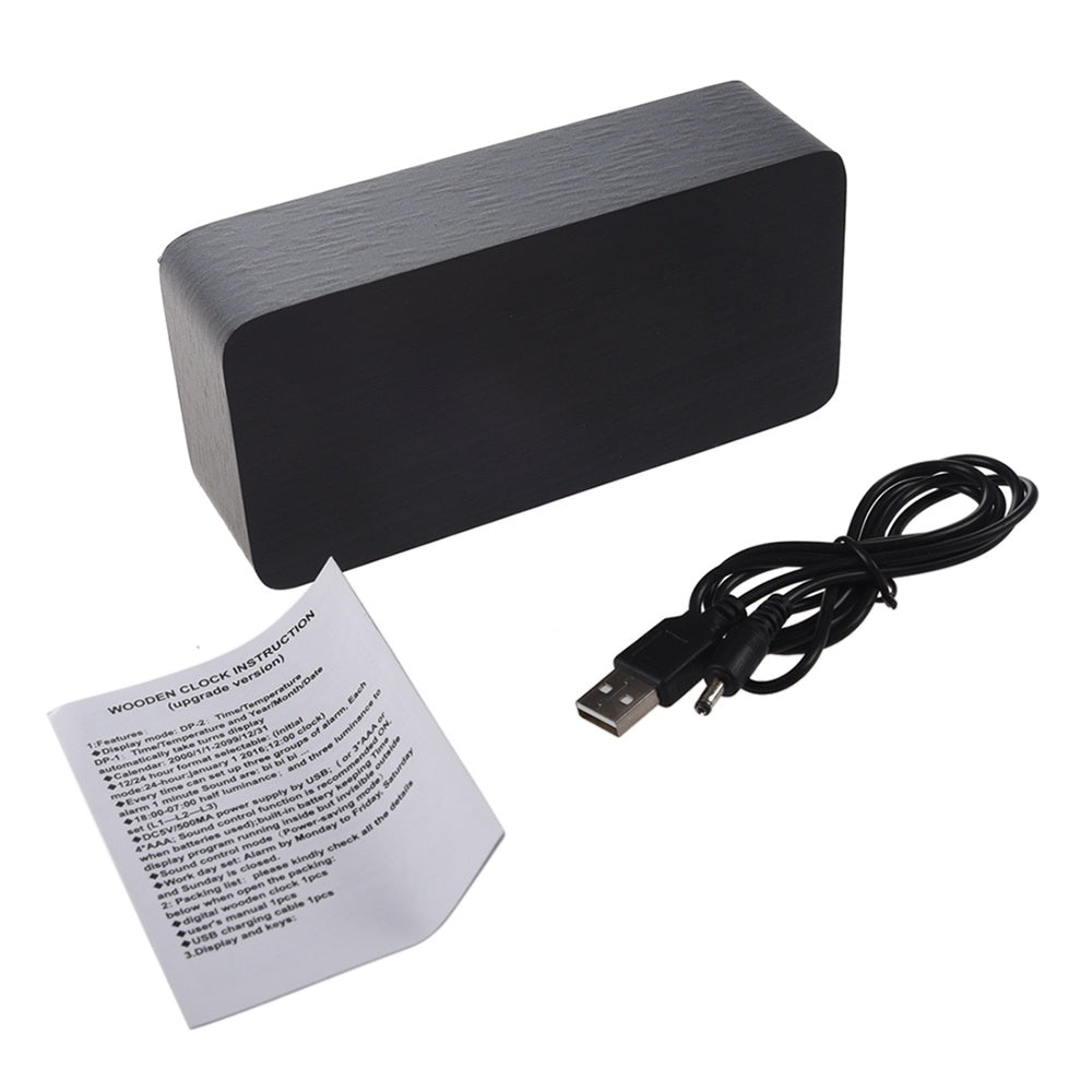 Ceas Electronic de Masă cu LED Alb – Termometru, Alarmă și Control Vocal, 3 Trepte de Lumină, Dimensiuni 150x70x40 mm, Adaptor Inclus, Culoare Neagră