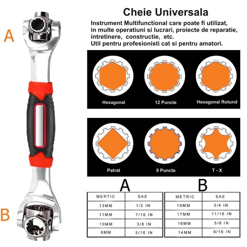 Descoperă Cheia Tubulară Multifuncțională 48 în 1 cu Rotație 360˚, un instrument esențial pentru orice pasionat de reparații auto sau mecanice. Cu o versatilitate impresionantă, acest instrument îți permite să strângi și să desfaci o varietate de șuruburi, economisind timp și spațiu în trusa ta de unelte. Capul rotativ la 360 de grade asigură accesul facil în locuri greu accesibile, iar construcția din materiale de calitate garantează durabilitate. Ideal pentru utilizare în ateliere, garaje sau acasă.
