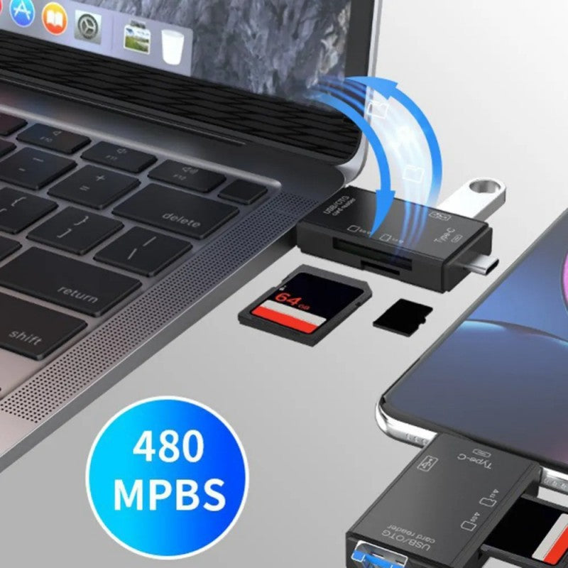 Cititor de Card OTG 6 în 1 – Transfer Rapid de Date cu USB 3.0, Micro USB, Tip C și Slot TF/SD