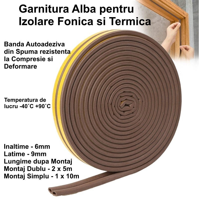Garnitură Autoadezivă de Etanșare Maro pentru Feronerie - 10m/Rol pentru Confort Termic și Fonic