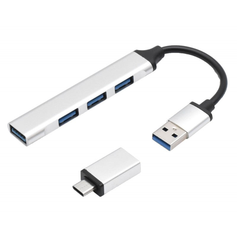 HUB USB 3.0 4 în 1 cu Adaptor Tip C – Conectori pentru Laptopuri, PC-uri și Dispozitive Mobile
