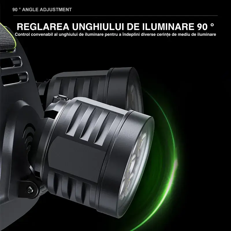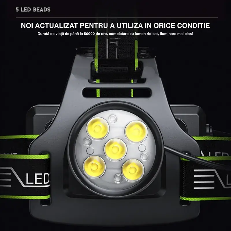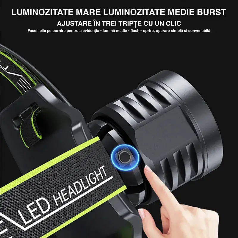 Lanterna de Cap Profesională VTM® cu LED – Încărcare Rapidă Tip C, 3 Moduri de Lumină, Ideală pentru Pescuit, Camping și Vânătoare