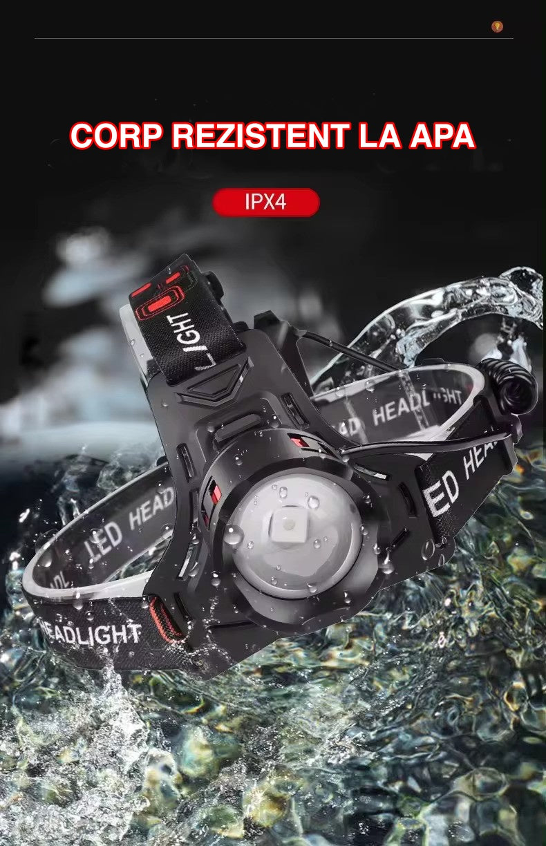 Lanterna de Cap Profesională VTM® cu LED – Iluminare Puternică pentru Pescuit, Camping și Vânătoare