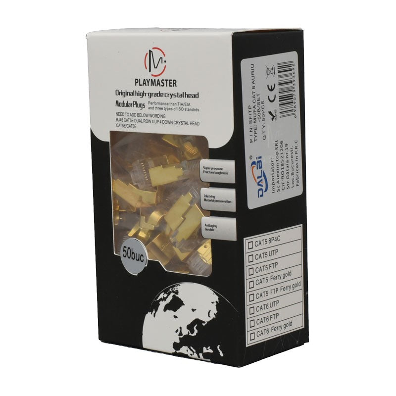 Mufa RJ45 S/FTP CAT 8 Auriu, Ecranare Metalică, 50 Buc/Set