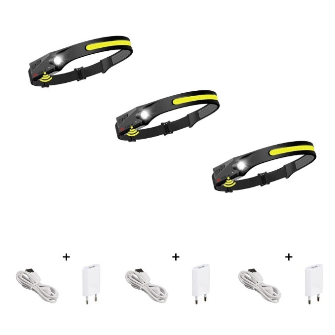 Set 3 Lanterne de Cap LED Flexibile – Lumini COB & XPE, Rezistente la Apă, cu Senzor de Mișcare