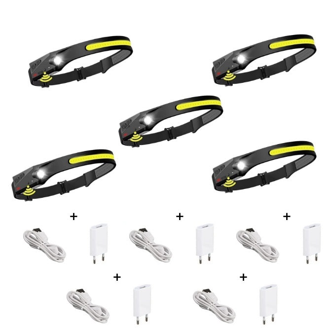 Set 5 Lanterne de Cap LED Flexibile – Puternice, Rezistente la Apă, cu Senzor de Mișcare și 4 Moduri de Lumină