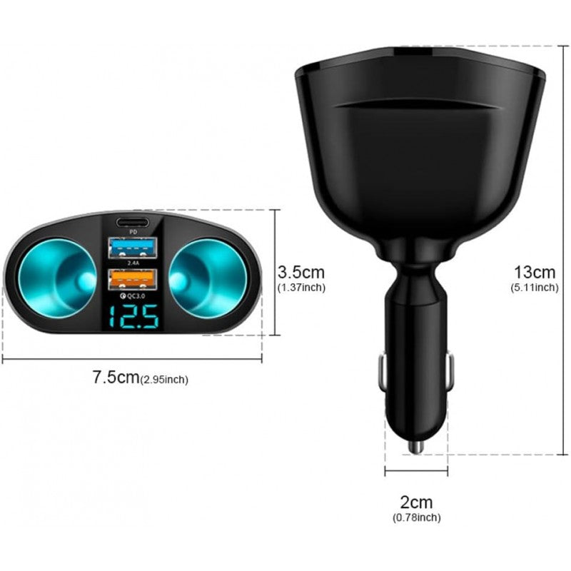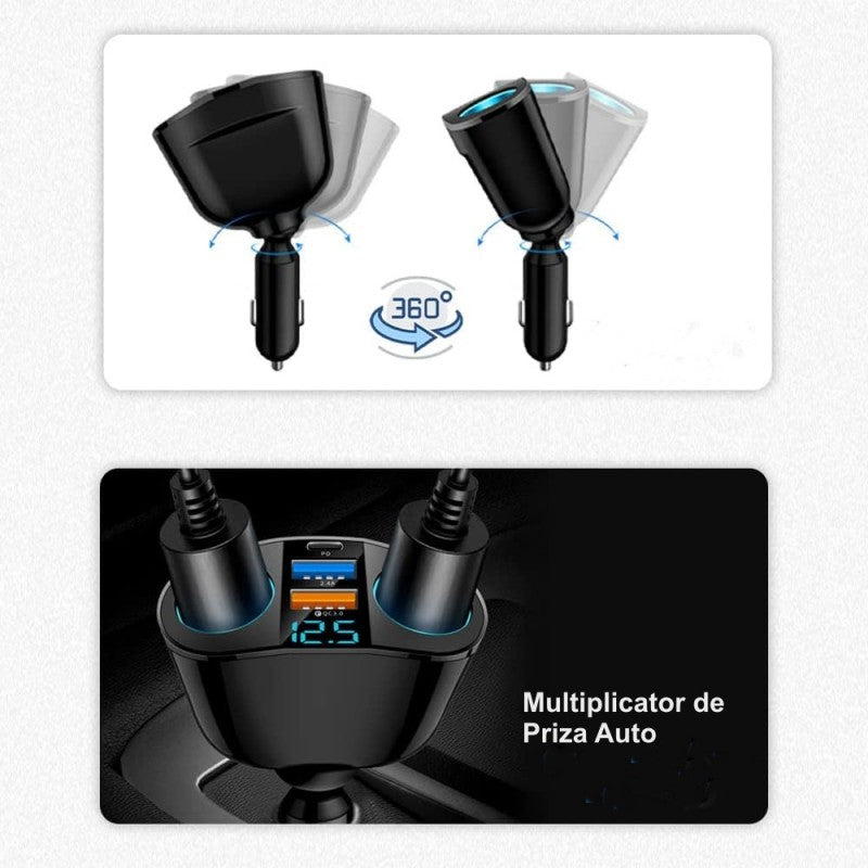 Splitter Brichetă Auto cu 2 Prize și 2 USB + 1 Tip C – Încărcare Rapidă pentru Mașină