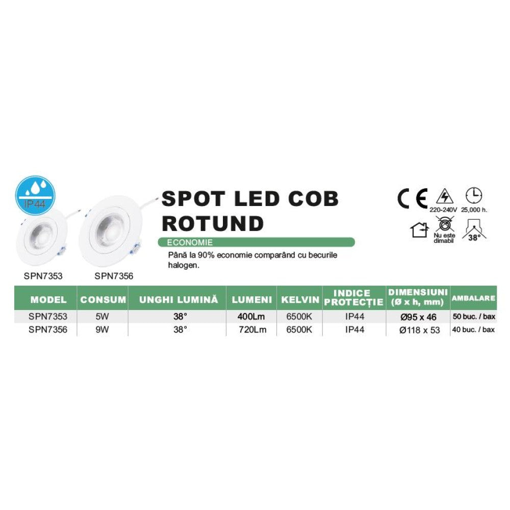 Spot LED Rotund COB 9W – Iluminare Eficientă pentru Birouri și Spații Comerciale