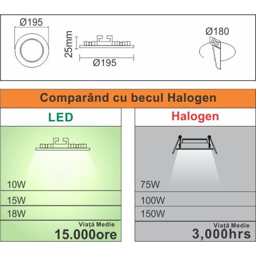 • Iluminat eficient – Consum redus de energie de doar 18W, echivalent cu 150W din becurile tradiționale.