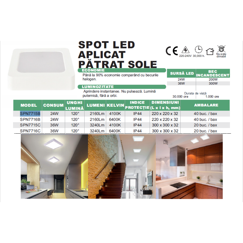 Spot LED Pătrat Aplicat 300x300mm, 36W, 6500K – Iluminare Eficientă pentru Birouri și Spații Comerciale