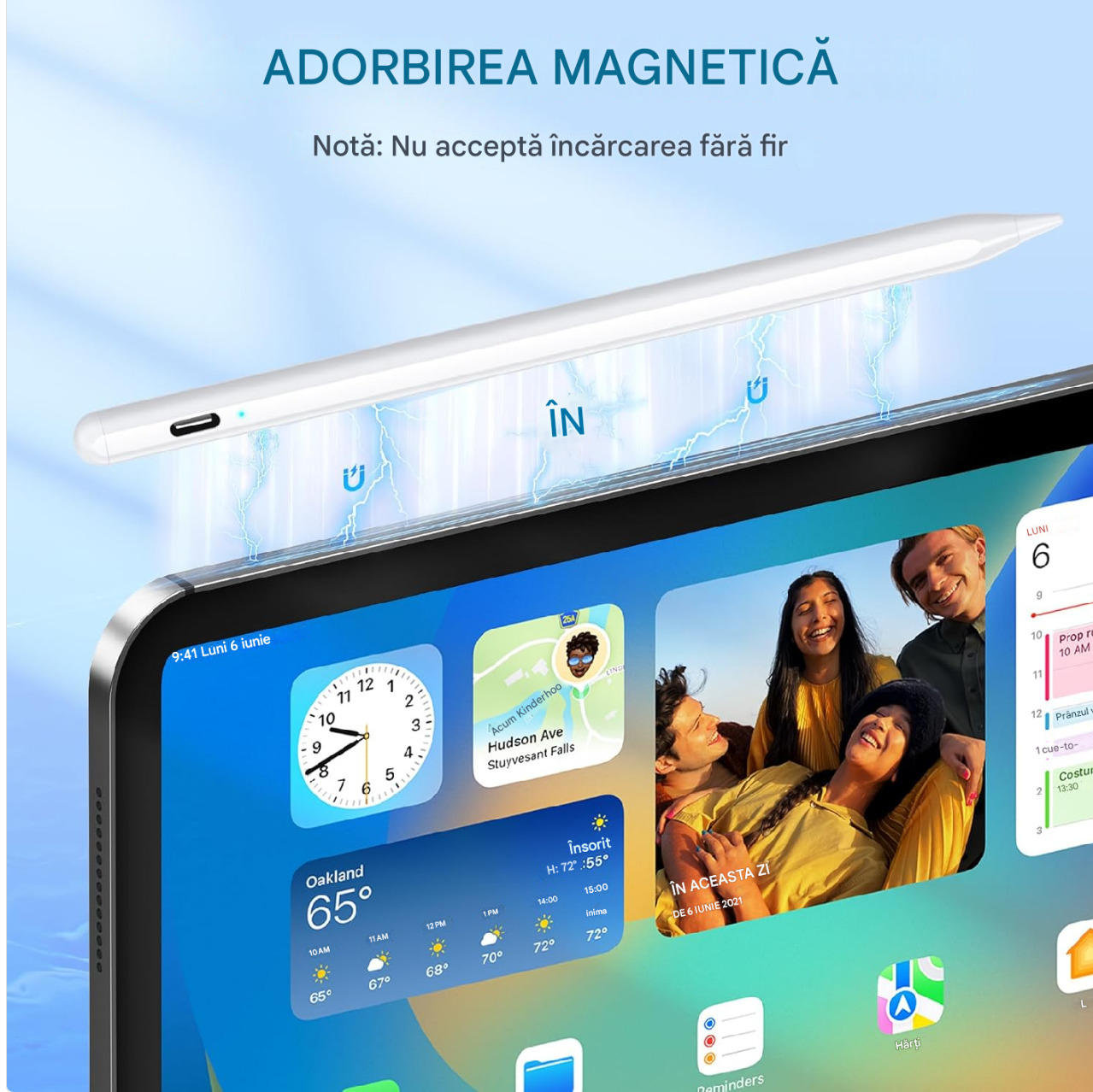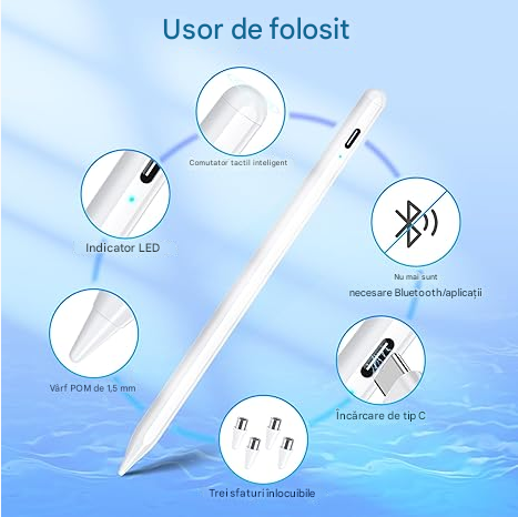 Stylus-ul este compatibil doar cu modelele de iPad Apple care acceptă tehnologia magnetică.