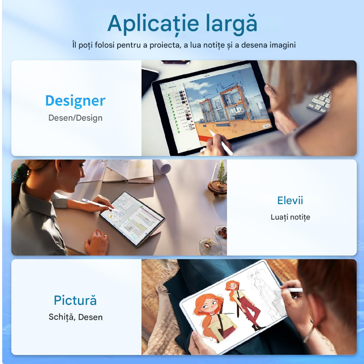 • Precizie și sensibilitate avansată – Control precis pentru desen artistic și luarea de notițe.