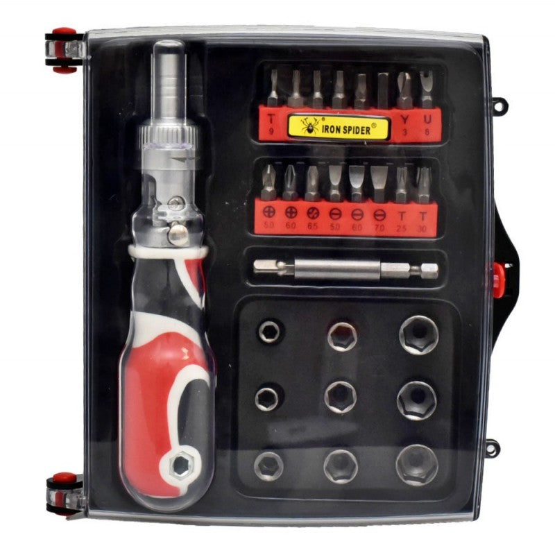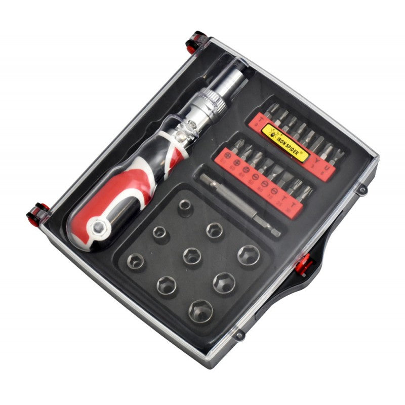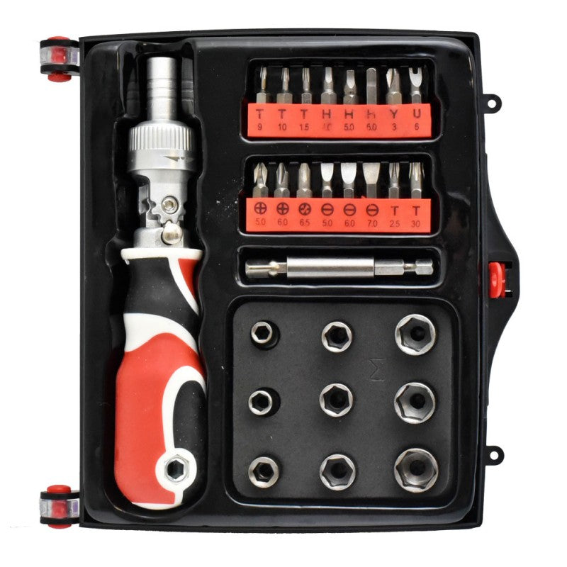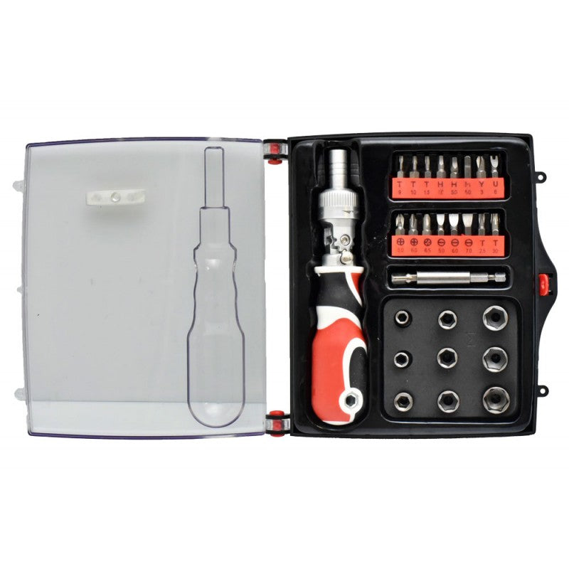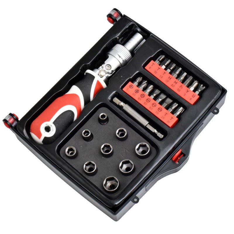 Trusă Profesională 27 Piese cu Chei Tubulare, Biti și Chlichet – Set Complet pentru Lucrări Mecanice și Reparații Auto