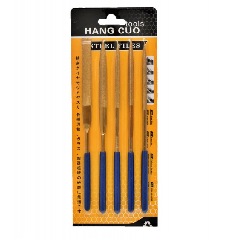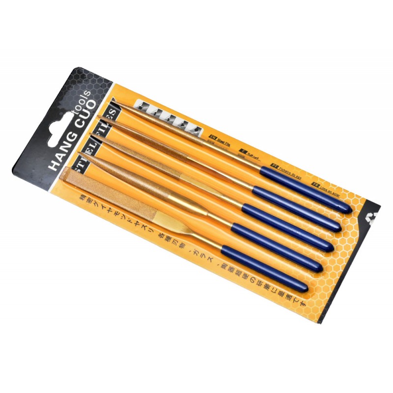 Trusa 5 Pile Fine 180mm - HC51805 este un set esențial pentru finisarea și detalierea materialelor. Cu pile din oțel aliat cu diamant și acoperite cu titan, acest set oferă precizie și durabilitate superioare, fiind ideal pentru lucrări diverse precum modelare, tăiere și lustruire.